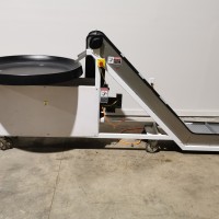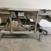 Stainless steel vibratory conveyor / separator with mild steel frame. The conveyor is 16" wide x 64" long and has a 3/8 deflection. The screen has 0.25" mesh. The smaller items fall through the screen and comes out the end. The outlet is 16" wide x 5.5" long and is 25.25" from the floor. The items on top of the screen fall out the side 7" diameter outlet that's 27.5" from the floor. It has an on / off switch. In good condition. Last used in a bakery feeding a bucket elevator.