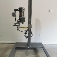 This Lightnin mixer is mounted on a portable stand. The mixer takes a 0.75" diameter shaft. The stand is made by Mass Flow Systems (model MF118RS). It lifts the mixer with a hand crank. Minimum height is 56.25" (from the bottom of the mixer to the floor) up to 96". The frame of the stand is mild steel and is 54" wide x 59" long. In good working condition. Last used in a pharmaceutical facility.
