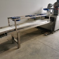 Horizontal manual load cartoner with Nordson vista hot melt glue system and ITW Dynatec pattern controller. It has a 72" long x 6" wide infeed conveyor with variable speed drive. 12" pitch with top squaring chain. Vacuum by Piab vacuum generator. In good condition. Last used in a bakery.