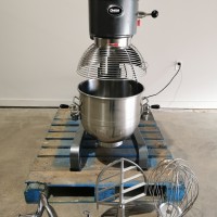 3 speed planetary mixer. 40 quart bowl. It is fully guarded with lock out switches if the bowl is lowered or the cage is opened. Comes with 1 bowl, the hook, whisk and paddle. In good working condition. Last used in a food facility.