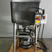 50 gallon stainless steel liquifier. New mechanical seals. It has 2 - 2" outside diameter sani clamp connection inlets in the top as well as a 18" manway. The manway has a 2.5" inlet. The tank is 26.5" wide x 26.5" long x 25" deep overall (19" sidewall, 6" dished bottom). The impeller is 8" diameter. It has a 3" outside diameter threaded outlet that's 24.5" from the floor. It has forklift pockets for easy moving. In good working condition. Last used in a dairy.