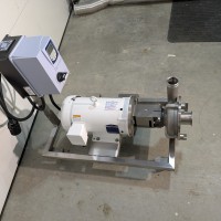 Brand new shear pump with a 2.5” tri-clamp inlet and a 2” tri-clamp outlet. It has a 1750 rpm painted washdown electric motor, mounted to a stainless steel cart with stainless steel washdown casters. Controled by a WEG Nema4x washdown rated variable speed controls.