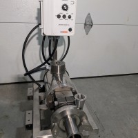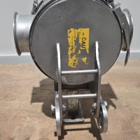 Pump comes on it's own stainless steel cart on casters. 2.5" outside diameter sani clamp connection inlet and outlet. Variable speed. In good condition. Paint is flaking off the outside of the pump housing. Last used in a food facility. Comes with a 840 2 bar bioprene element. 40 mm bore 1250 mm long.