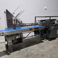 Horizontal manual load cartoner with Nordson vista hot melt glue system and ITW Dynatec pattern controller. It has a 72" long x 6" wide infeed conveyor with variable speed drive. 12" pitch with top squaring chain. Vacuum by Piab vacuum generator. In good condition. Last used in a bakery.