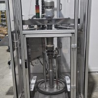 Lab size mixer on a stand. Height adjustable. Pneumatically driven. In good working condition. Last used in a pharmaceutical facility.