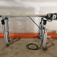 Series 2200. This conveyor has a 8" wide x 71.5" long flat belt. There is a 10" long stainless steel transition slide at the discharge end. It's on a height adjustable aluminum frame on caster. Currently it's 42" from the floor. In good condition. Last used in a bakery.