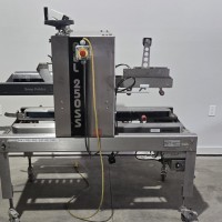 All stainless steel case sealer on casters. It has refurbished top and bottom tape heads. Hand crank adjustments for width and height of case. It has a control box mounted on the top of the machine with an emergency stop on the side. Can handle a case size of 8" to 20" in length, 6" to 15" in width and 4 1/2" to 16" in height. In good working condition. Last used in a food facility.
