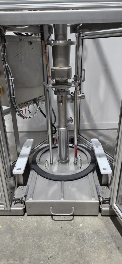 Drum emptying system with a model 2VFL30 Hygenic volumetric dosing pump. Suitable for abrasive, chunky and shear sensitve materials. Good for pumping hot or cold products. In good working condition. Last used in a food facility.