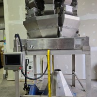 10 head comination scale on mobile platform. The platform is 60" wide x 60" long x 98" to the top of the railing. The scale has a weight range from 4 g to 300 g. It has a maximum speed of 70 wpm. The product gets dumped and slides down a tube to get discharged out the front. Discharge height is 46" from the floor. It has a Yamato RCU 700 controller. In good working condition. Last used in a bakery.